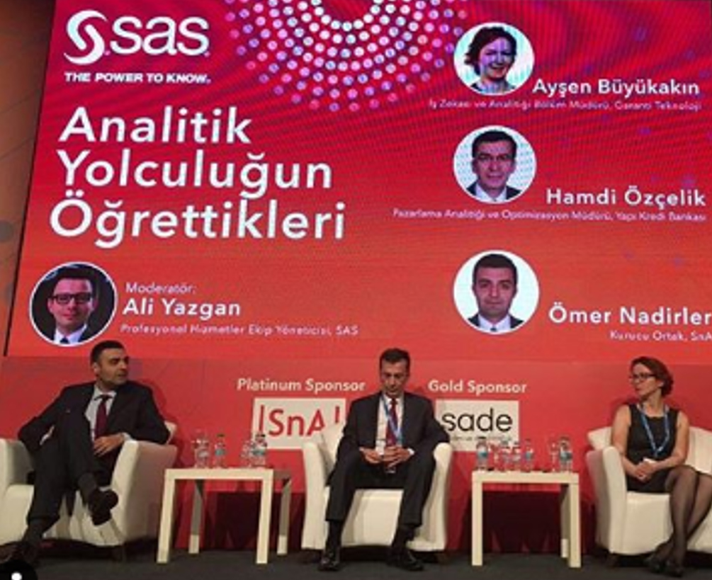 SnA sponsored and attended as a speaker to SAS Events in Turkey in 2016, 2017 and 2018. Including a panel discussion with analytics leaders from Yaki Kredi and Garanti Bank.